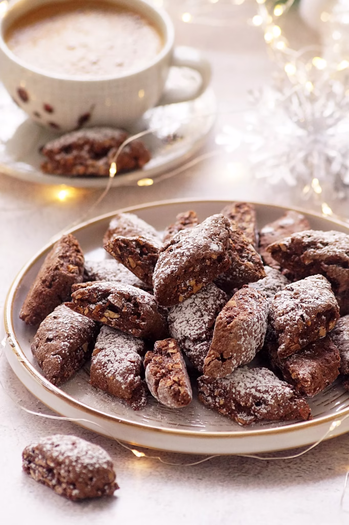 Castagnelle Cookies are traditional Italian Christmas cookies made with almonds, cocoa, orange zest, coffee, and warm spices. These simple yet delicious cookies are nutty, crunchy, and perfect for the holiday season!